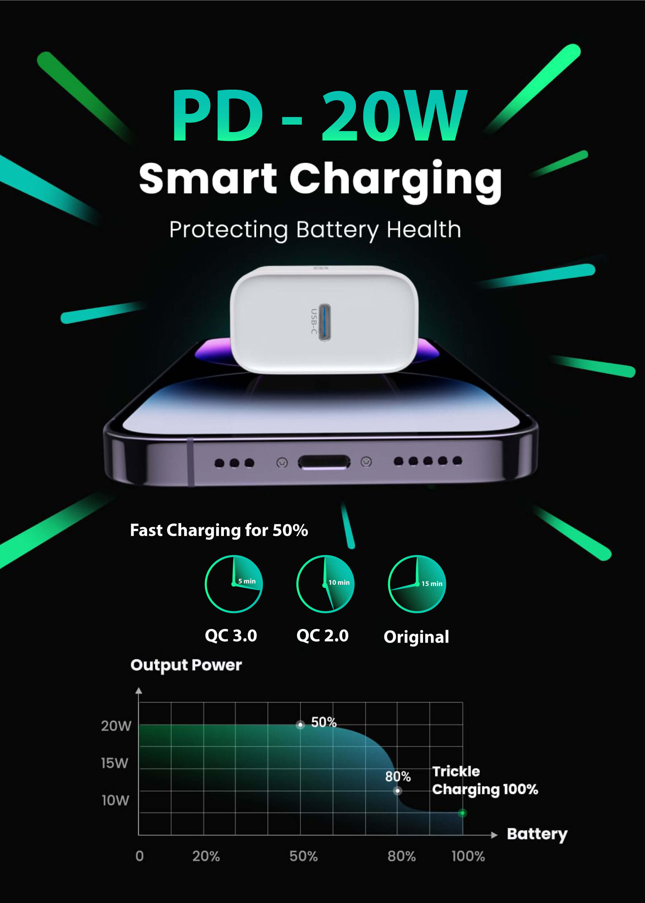 Type-C PD20W Wall Charger ✔️Input:100-240V ✔️Output: DC 5V-3A; 9V/2.22A, 12V/1.67A