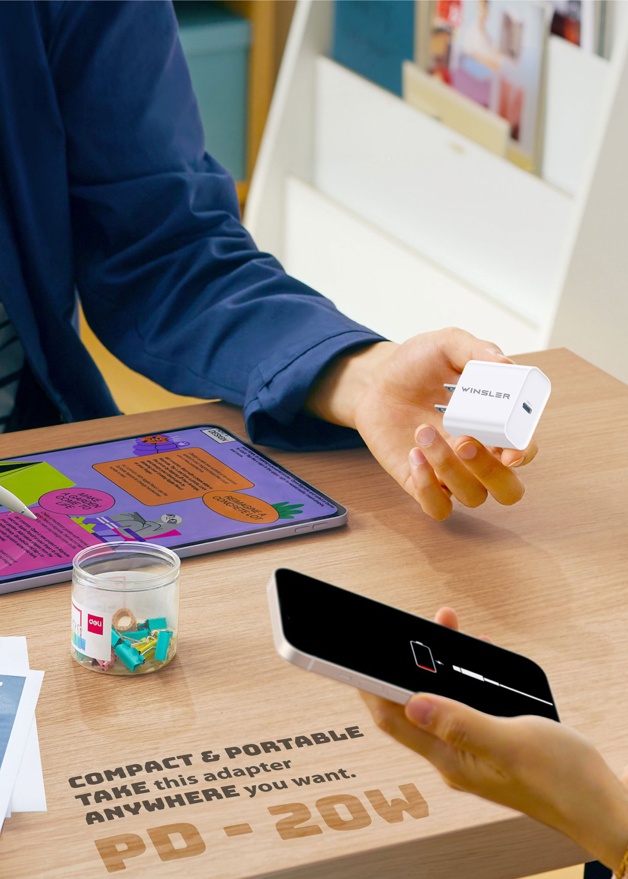 WINSLER Combo – PD 20W Dual-Port Charger (1C1A) + 60W USB-C Cable